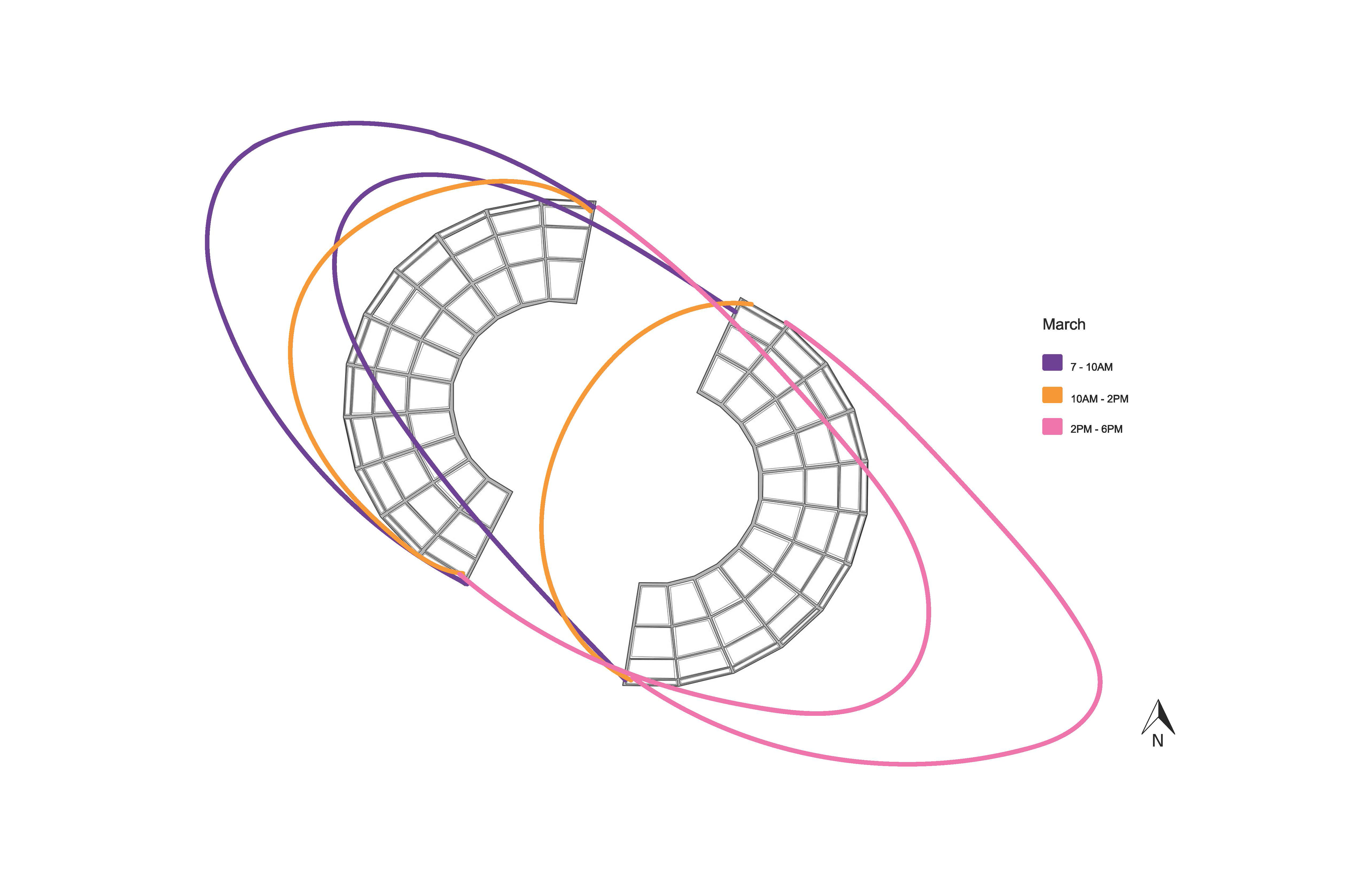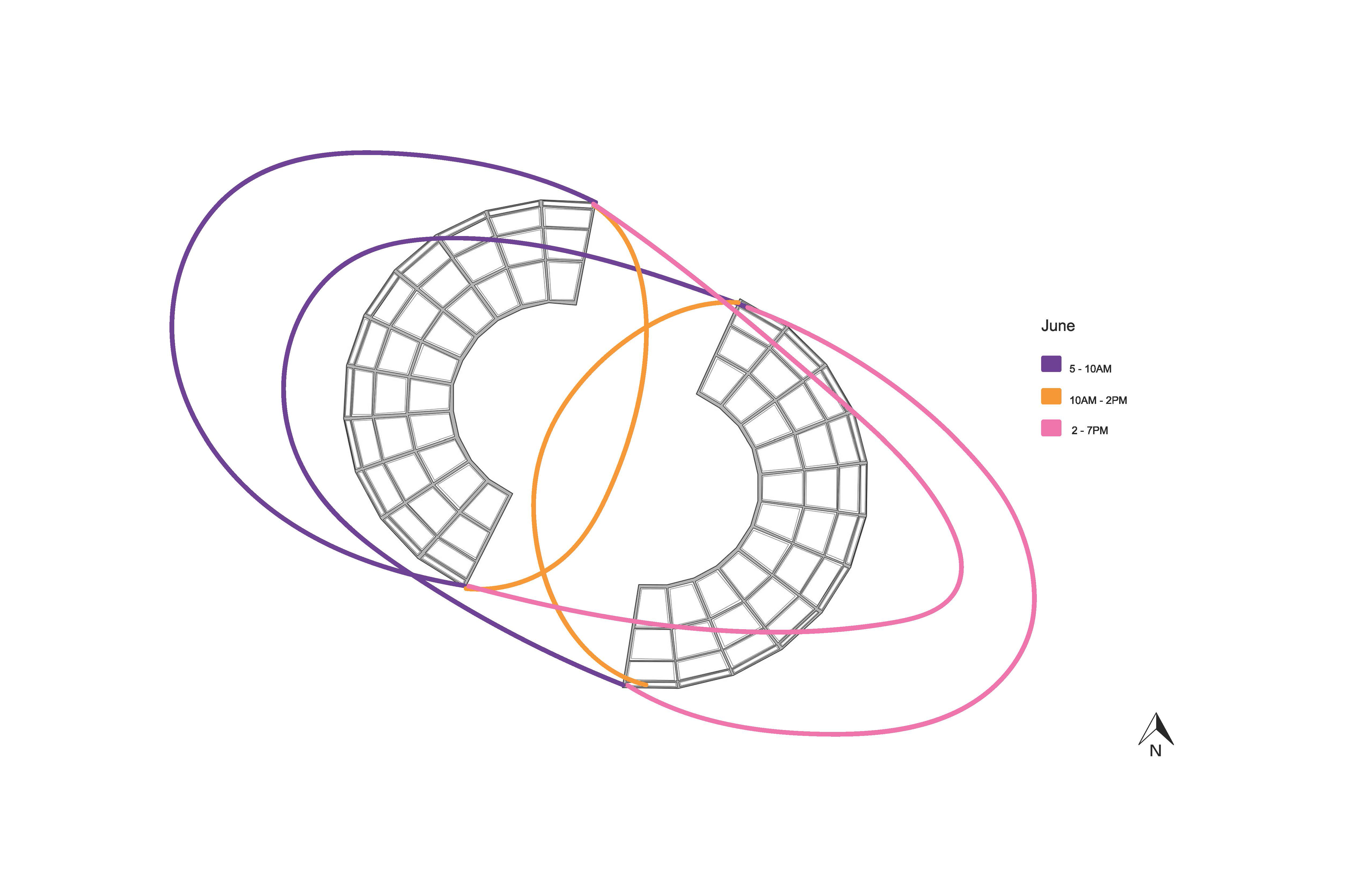 Sun Catcher is a dappling device that manipulates and harnesses the sun by creating a practical shaded space using biodegradable materials for the public on the lawn in Chelsea Piers. The task was to create an public installation for a