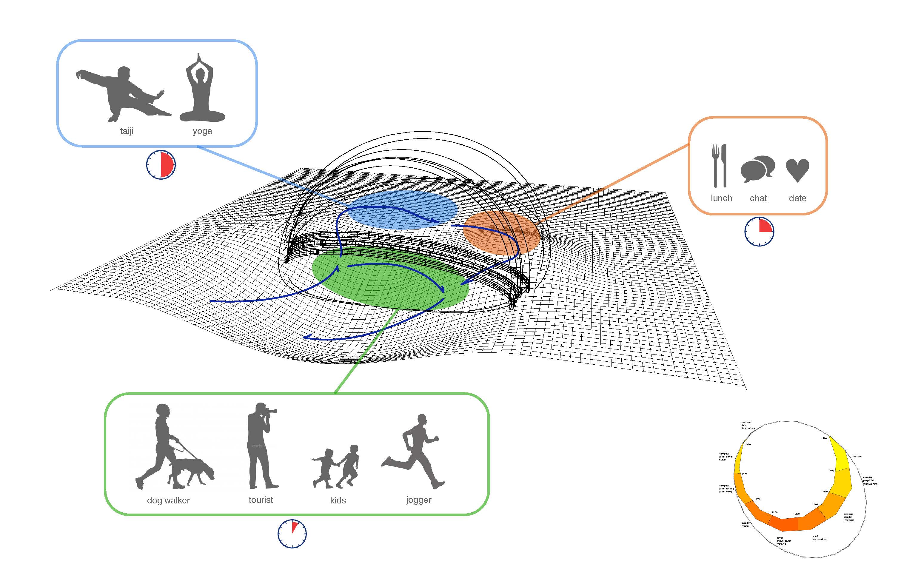 Sun Catcher is a dappling device that manipulates and harnesses the sun by creating a practical shaded space using biodegradable materials for the public on the lawn in Chelsea Piers. The task was to create an public installation for a