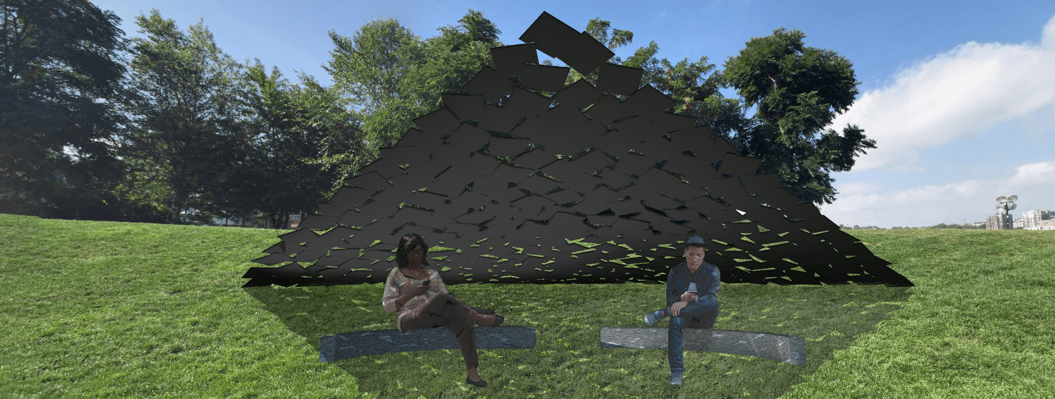 Sun Catcher is a dappling device that manipulates and harnesses the sun by creating a practical shaded space using biodegradable materials for the public on the lawn in Chelsea Piers. The task was to create an public installation for a