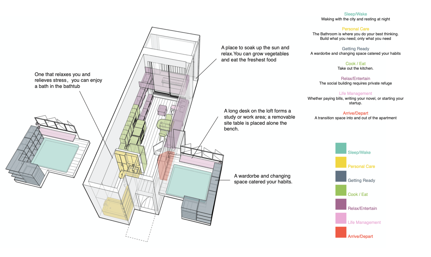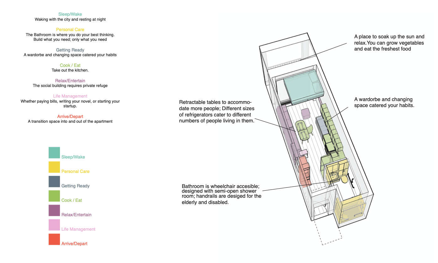 Housing affects people’s living conditions and social relations, and also people’s lifestyle depending on architecture. Change the living location between different generations and keep an appropriate distance from each generation’s personal space, which promotes more harmonious family relations among generations.