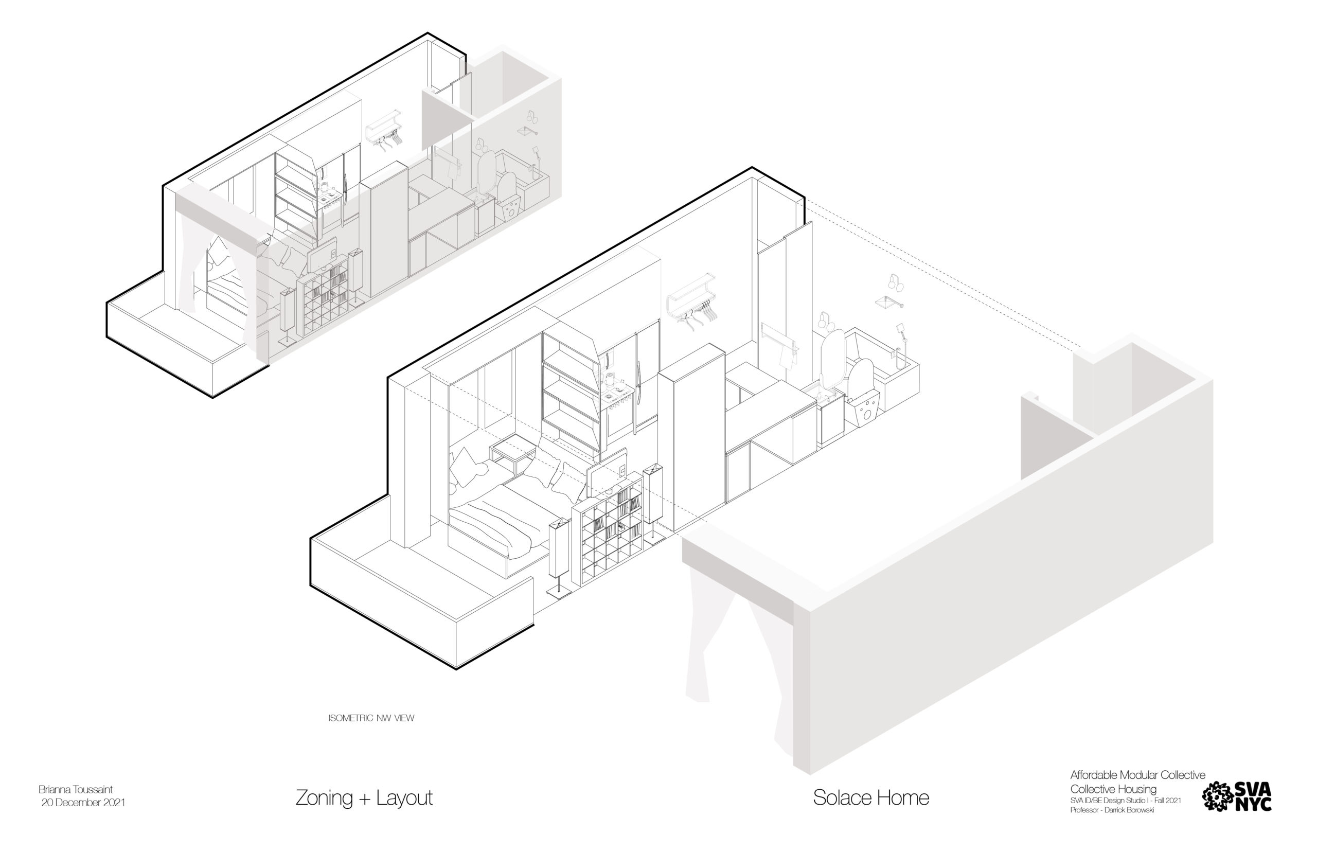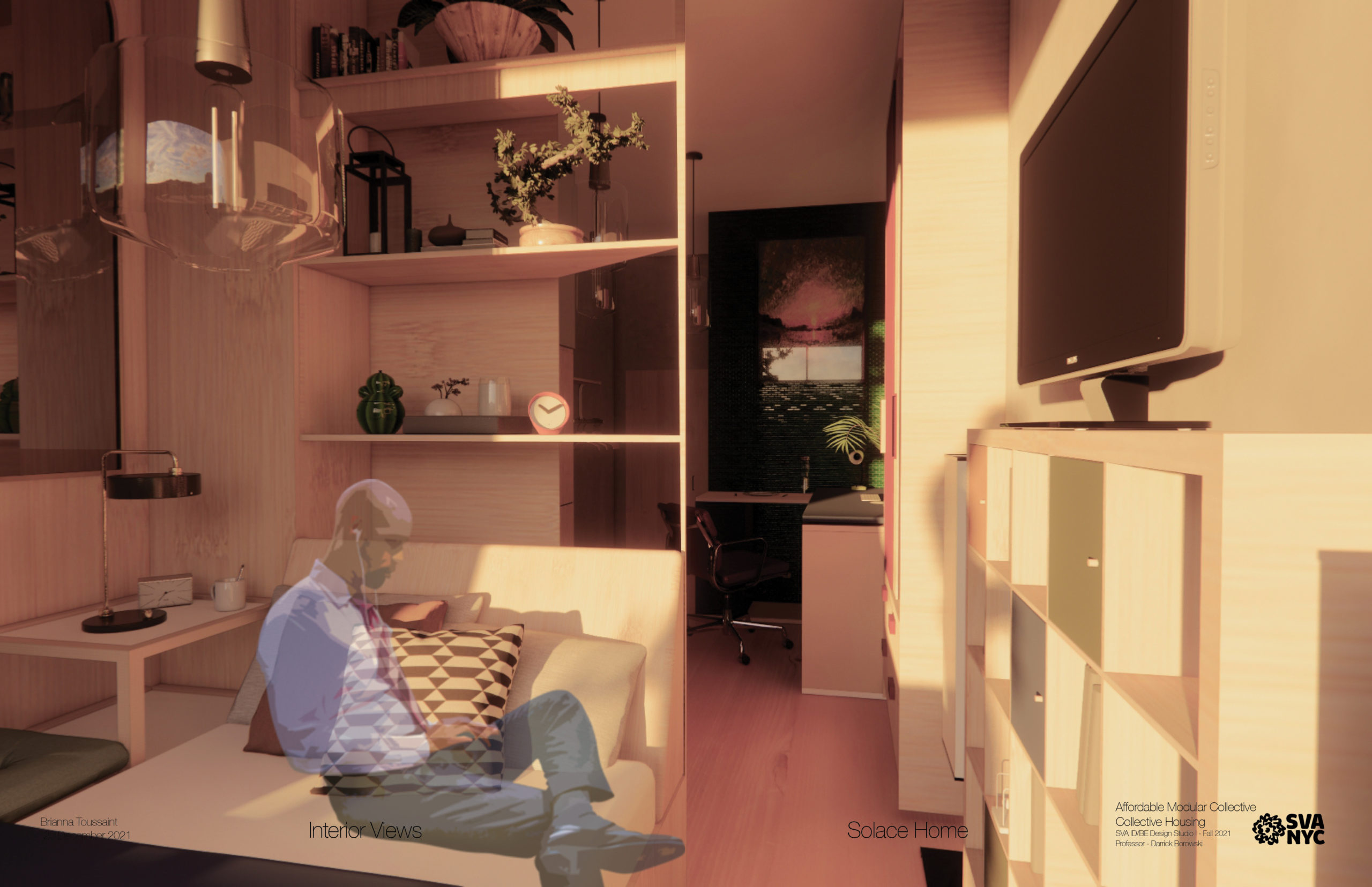 ![]() Concept StatementSolace home is supportive housing for people who’ve lived a life where sharing was once a necessity but is now a choice. The formerly incarcerated and empty nesters are two users who, at first glance, do not share commonalities. This statement, however, could not be more false. These two pools of people are a minority force that, be it out of their will or not, needed to share. Solace home works to accommodate to both users a new way of life. RelatedTags: Micro-Apartment