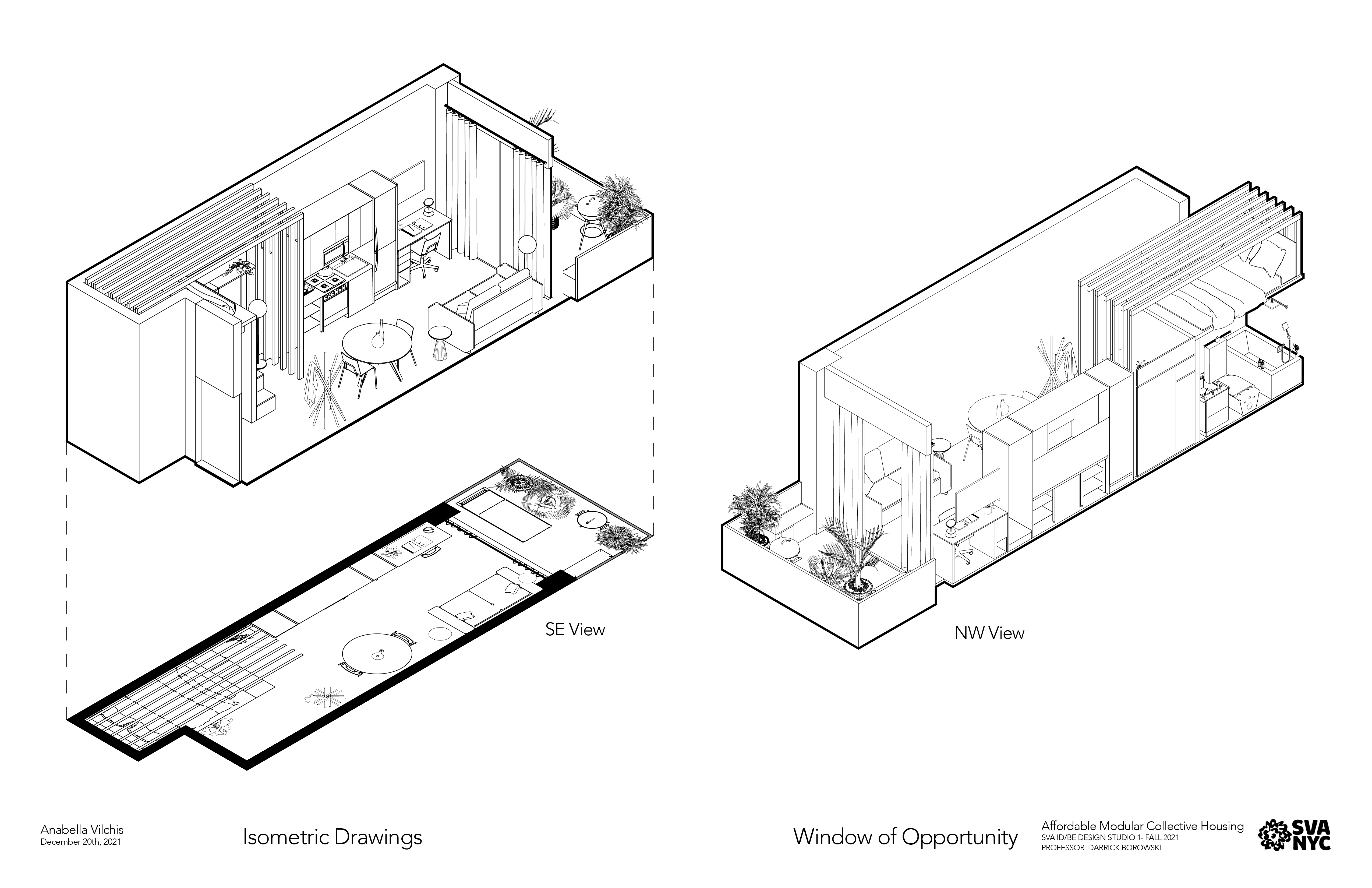 The living space is arranged with a clear view of the window, which provides a private outlook into world. To honor the privacy, which was previously stripped away, the sleep/wake, getting ready, and self care areas are protected by a semi-private nook.